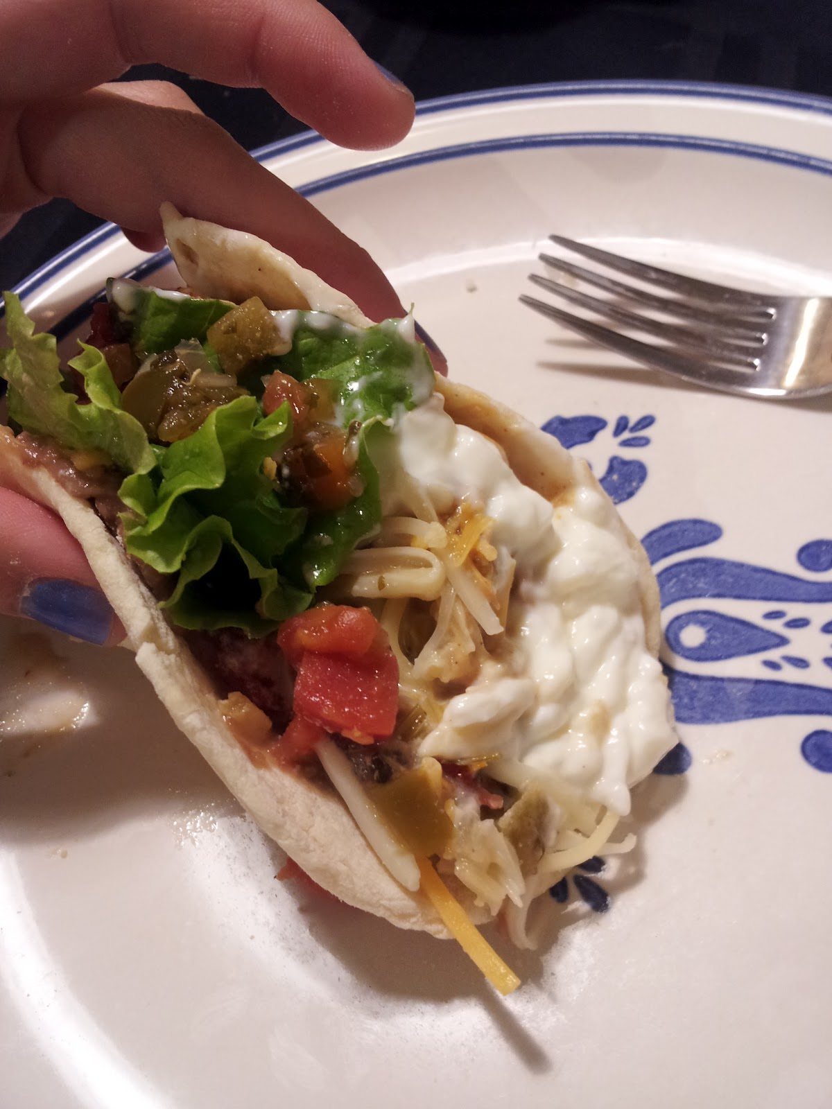 Use tongs or a spatula to cook each side of the tortilla in the skillet, like 30 seconds each side.