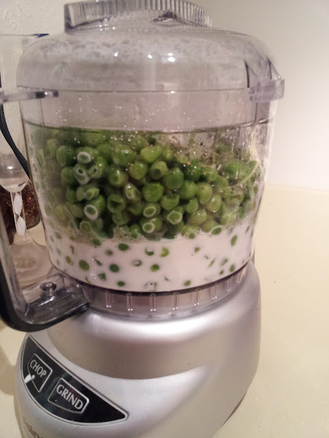 Blend peas and the other mushy pea ingredients in a blender/cuisinart.